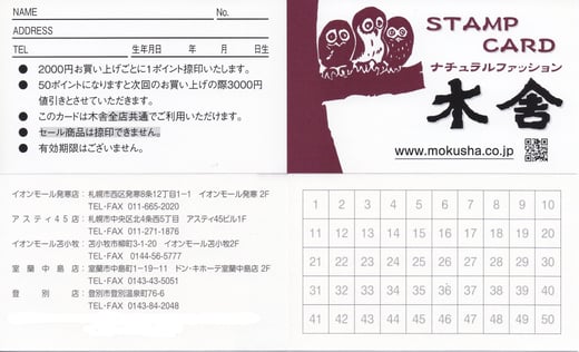 2,000円お買い上げごとにスタンプを1ポイント捺印します。